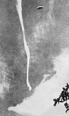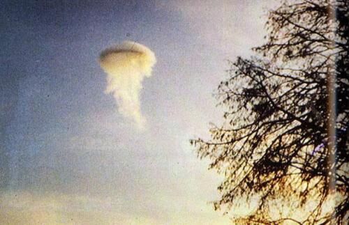 19741117早晨,劳尔森带着他的爱犬在丹麦日德兰半岛散步,突然看到一团白云里裹着一个外形奇特的物体。他在距离这个物体飞到大约250300米远的地方时拍下了这张照片。